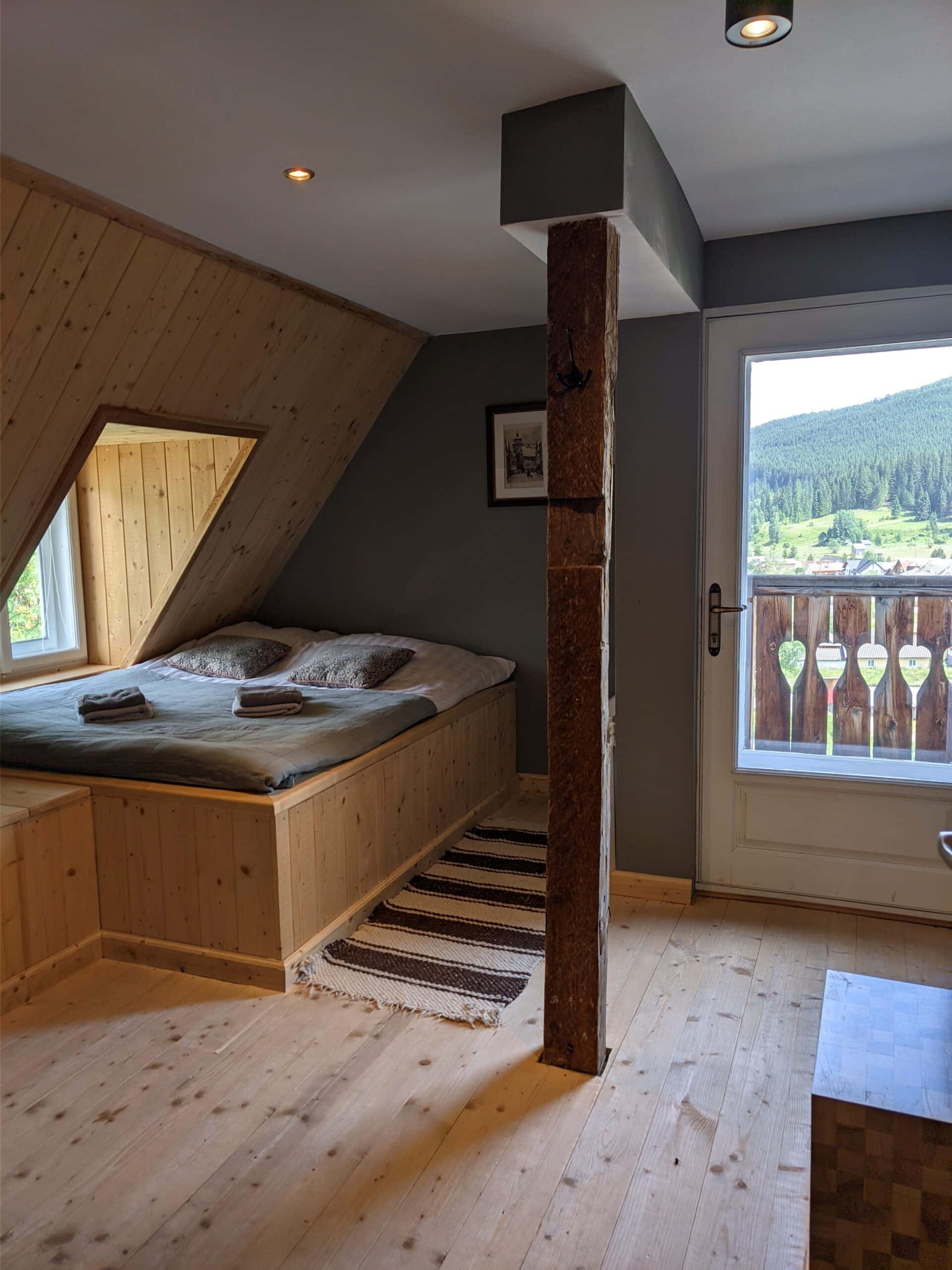 Camera Dadu are o privelista superba peste raul Bistrita si muntele Dadu. Camera are un pat dublu, baia proprie cu cada si un balkon.